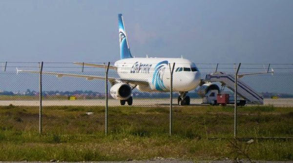 Οι πρώτες πληροφορίες για την πτήση MS181 μιλούν για έναν αεροπειρατή, ο οποίος λίγο πριν τις 10 το πρωί άρχισε να απελευθερώνει επιβάτες. Ο αεροπειρατής απείλησε να ανατινάξει τη ζώνη με εκρηκτικά που φορά ενώ η αστυνομία έλαβε εντολή να μείνει μακριά από το αεροσκάφος.