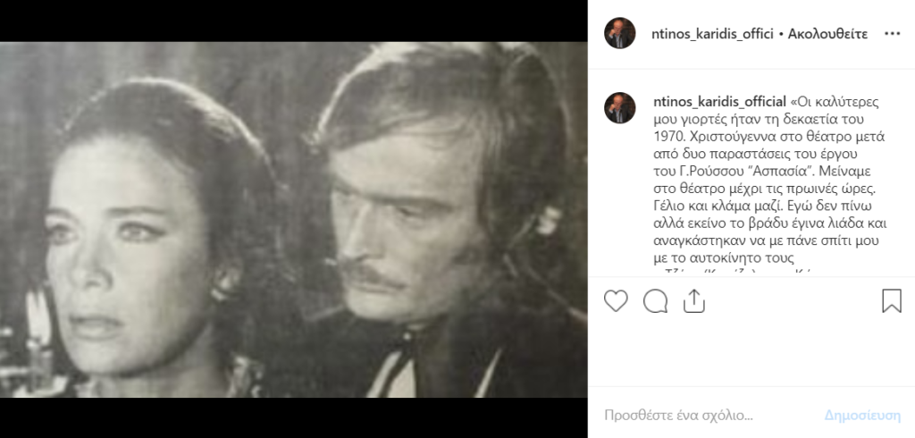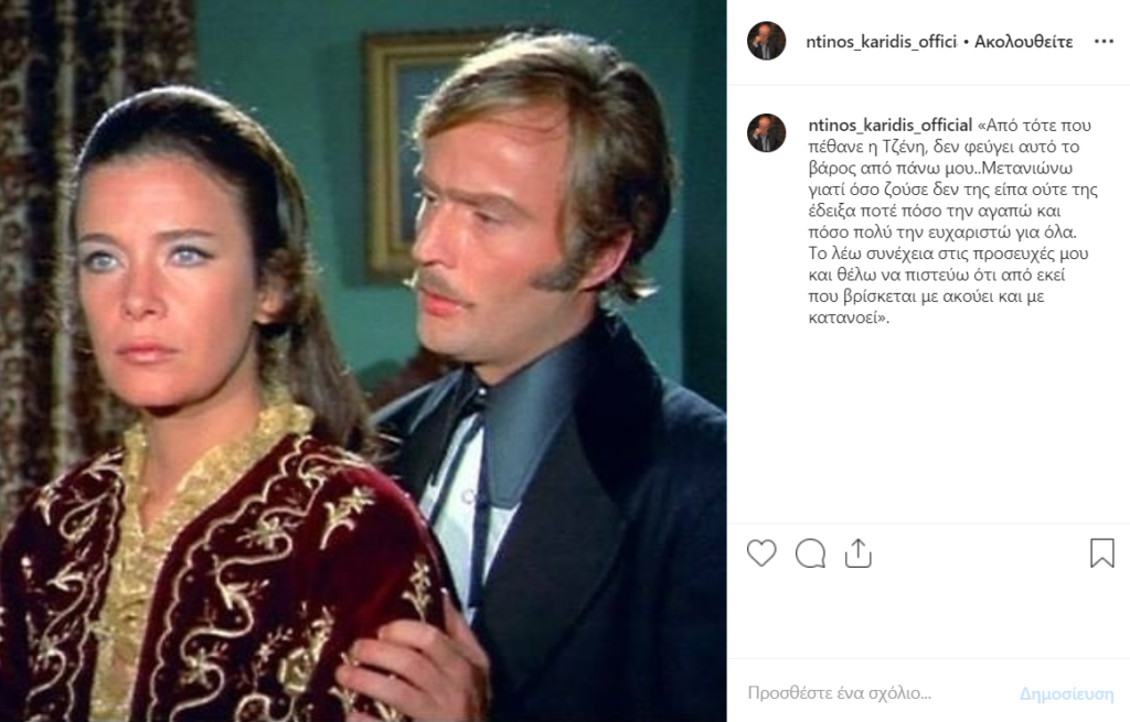 Αυτή τη φορά, ο ηθοποιός δημοσίευσε μια φωτογραφία με την Τζένη Καρέζη και θέλησε να πει δημόσια το βάρος που έχει στην ψυχή του.
