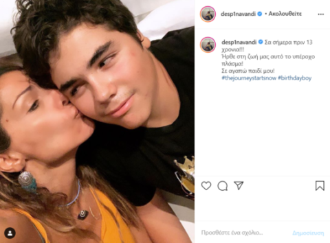 Σήμερα όμως, η Δέσποινα με αφορμή τα 13α γενέθλιά του, θέλησε να του στείλει και δημόσια τις ευχές της δημοσιεύοντας μια φωτογραφία στην οποία φαίνεται η ίδια να του δίνει ένα τρυφερό φιλί στο μάγουλο.