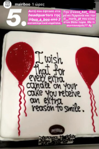 Η παρουσιάστρια και δημοσιογράφος θέλοντας να ευχαριστήσει τον κόσμο, αλλά και να μοιραστεί την χαρά της, «ανέβασε» στα stories του Instagram τις πέντε τούρτες τις οποίες έσβησε, σχολιάζοντας πως «επειδή έγινα 33 και 3+3 κάνει 6, το σύμπαν μου έφερε 6 τούρτες»!