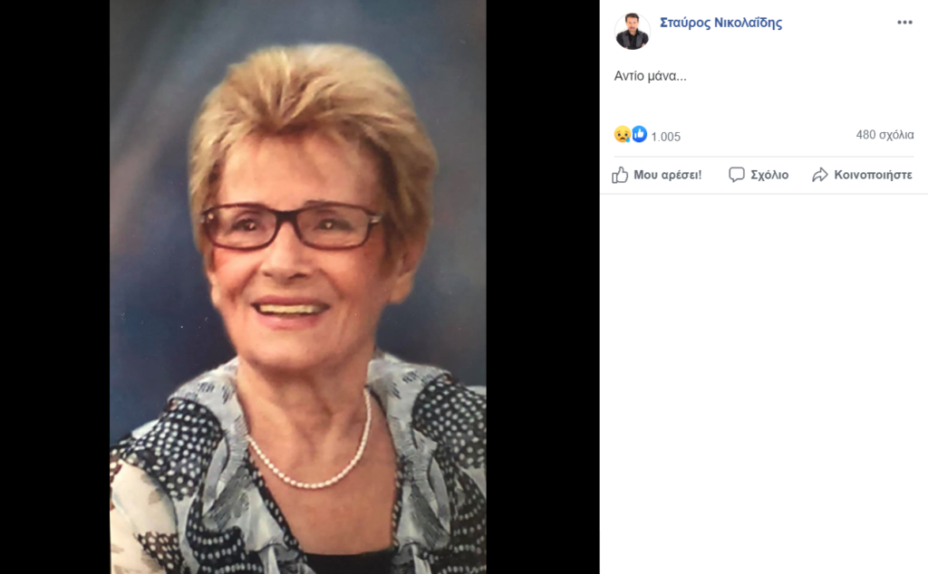 «Αντίο μάνα», έγραψε ο Σταύρος Νικολαΐδης.