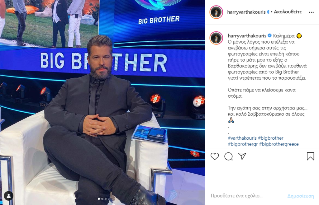 Έτσι ο Χάρης Βαρθακούρης δημοσίευσε τρεις φωτογραφίες από το πλατό του Μεγάλου Αδελφού για να κλείσει, όπως τόνισε ο ίδιος, ορισμένα στόματα.