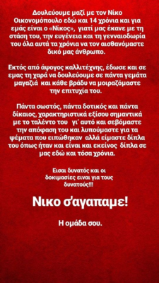 Νίκο σε αγαπάμε! Η ομάδα σου».