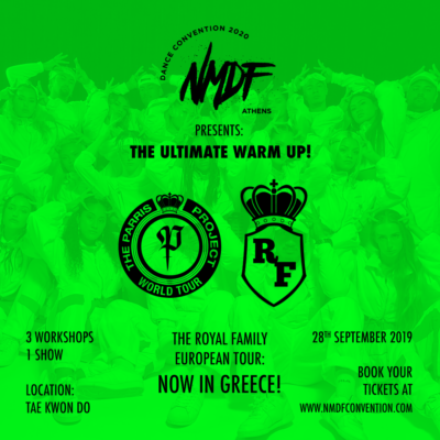 Ο σκηνοθέτης και χορογράφος, Νίκος Μαριάνος, φέρνει για πρώτη φορά στην Ελλάδα μία από τις κορυφαίες ομάδες χορού στον κόσμο, τη Royal Family Dance Crew! Στις 28 Σεπτεμβρίου 2019, μην χάσετε την ευκαιρία να παρακολουθήσετε τρία masterclasses με τα μέλη της RFDC, στο Γήπεδο Tae Kwon Do, και μετά να απολαύσετε το εκρηκτικό dance show της ομάδας στο Θέατρο του Κολλεγίου Αθηνών. Μία επική εμπειρία για χορευτές και όλους όσοι αγαπούν τον χορό και τη διασκέδαση!