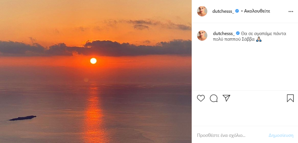 «Θα σε αγαπάμε πάντα πολύ παππού Σάββα», έγραψε στη λεζάντα η Δούκισσα Νομικού.