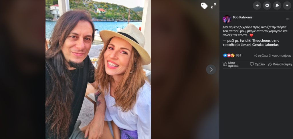 Πέντε χρόνια συμπληρώνονται από τη μέρα που η Ευρυδίκη γνώρισε τον σύζυγό της Μπομπ Κατσιώνη.