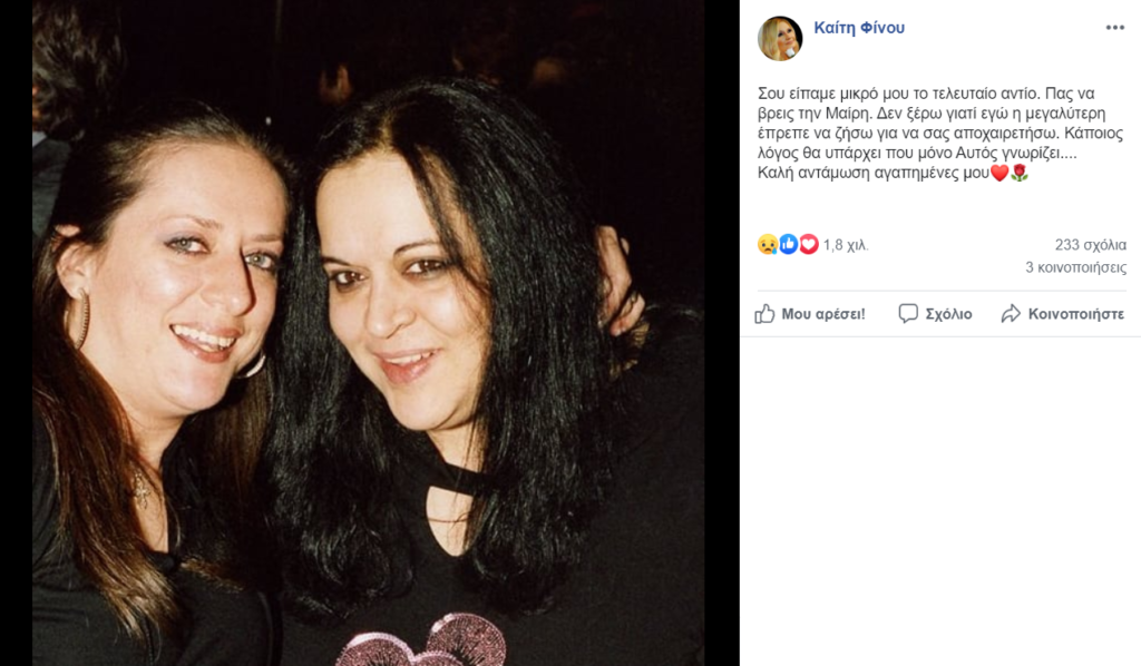 Καλή αντάμωση αγαπημένες μου», έγραψε η Καίτη Φίνουν αναρτώντας μια φωτογραφία με τις αδελφές της.