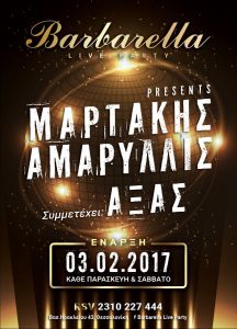 ο Κώστας Μαρτάκης και η Αμαρυλλίς θα ξεσηκώνουν τη Θεσσαλονίκη στο Barbarella live party!
