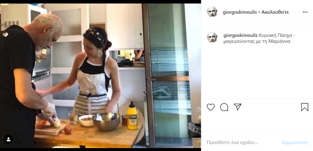 «Κυριακή Πάσχα – μαγειρεύοντας με τη Μαριάννα» έγραψε στη λεζάντα της φωτογραφίας ο Γιώργος Κιμούλης.