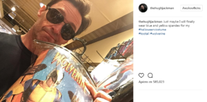 «Τελικά θα φορέσω το μπλε-κίτρινο κολάν για το κοστούμι μου», έγραψε κρατώντας τη στολή Wolverine καθώς δεν τον είχαμε δει ποτέ να φοράει την κλασσική στολή του υπερήρωα των X-Men, όπως είχε αποτυπωθεί μέσα από τα comics.