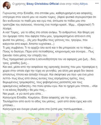 Αναλυτικά η ανάρτηση της Σίσσυς Χρηστίδου