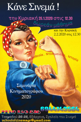 Σεμινάρια Κινηματογράφου 2020 του Σχολείου του Σινεμά Σκηνοθεσία, Ιστορία & Κριτική, Δημιουργία Ντοκιμαντέρ, Μοντάζ, Σενάριο Κινηματογραφική Υποκριτική: “Παρουσιάσεις-Ανοιχτά Μαθήματα-Εγγραφές”