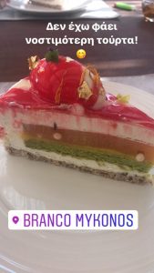 Ενώ λίγο αργότερα δημοσίευσε και μια φωτογραφία στο Insta Stories της από ένα κομμάτι από την τούρτα του Θεοδωρίδη.
