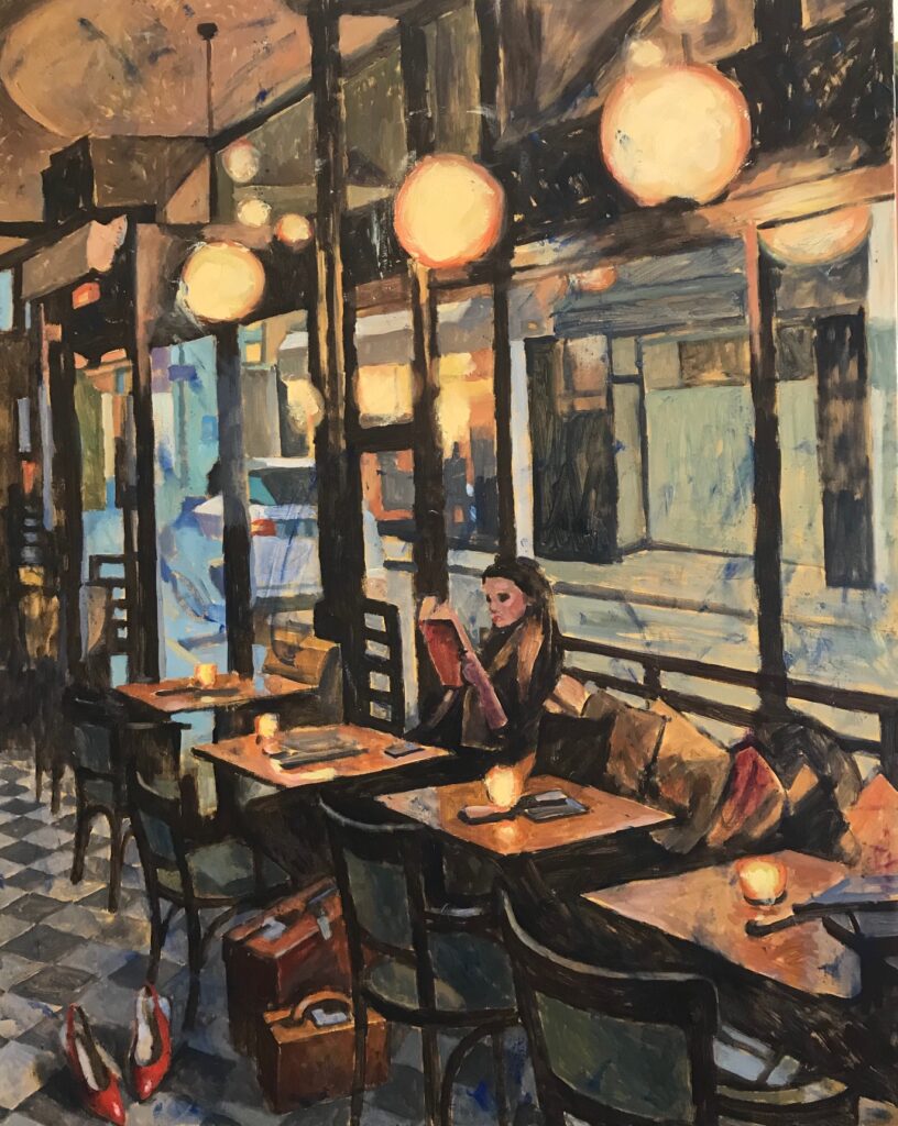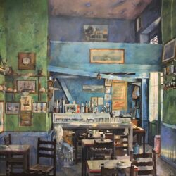 Σε μια περίοδο κοινωνικής αποστασιοποίησης, ο καταξιωμένος ζωγράφος επιστρέφει με νέο πνεύμα και ανανεωμένη διάθεση στο θέμα των καφενείων, που τον απασχόλησε για πρώτη φορά τη δεκαετία του ‘80 στο Παρίσι.