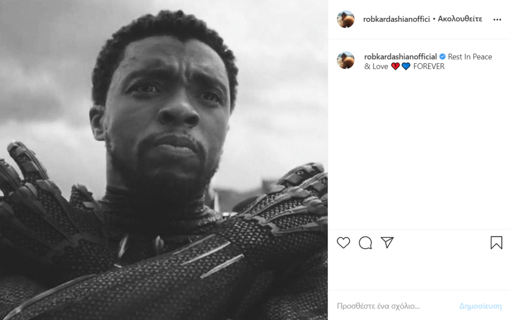 Όπως έγινε γνωστό, την τελευταία του πνοή σε ηλικία 43 ετών, άφησε στο σπίτι του στο Λος Άντζελες, ο πρωταγωνιστής της ταινίας Μαύρος ΠάνθηραςChadwick Boseman.