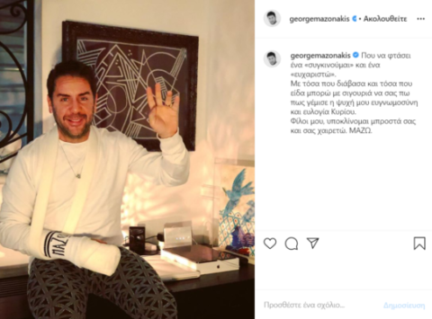 Για τον λόγο αυτό, ο Γιώργος Μαζωνάκης θέλησε να ευχαριστήσει τους διαδικτυακούς του φίλους για τα μηνύματα που δέχτηκε μέσω μιας ανάρτησης στο Instagram.