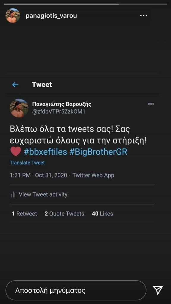 Ο Παναγιώτης Βαρουξής έκανε την πρώτη του δημοσίευση στον προσωπικό του λογαριασμό στο Instagram, μετά την αποχώρησή του.
