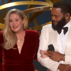 Ενώ μια από τις πιο συγκινητικές στιγμές της βραδιάς, ήταν όταν στη σκηνή εμφανίστηκε η Christina Applegate υποβασταζόμενη και κρατώντας μπαστούνι λόγω της σκλήρυνσης κατά πλάκας.