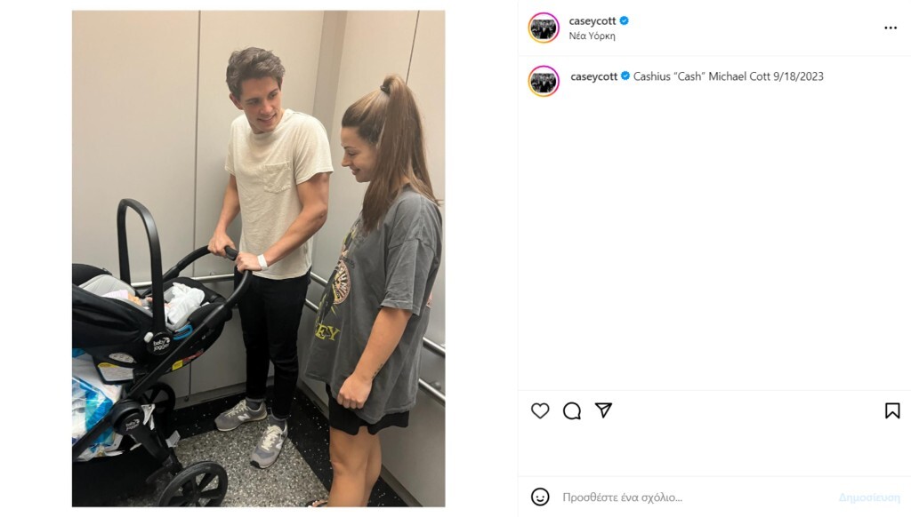 Μάλιστα, ο Cott που είναι ιδιαίτερα ενεργός στα social media, μοιράστηκε με τους followers της στο Instagram μια φωτογραφία του και της Basara, καθώς έσπρωχναν τον νεογέννητο γιο τους σε ένα καρότσι.