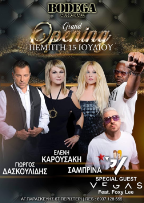 Στις επάλξεις της διασκέδασης, επιστρέφουν στο «Bodega», ο Γιώργος Δασκουλίδης, η Ελένη Καρουσάκη, η Σαμπρίνα και οι Vegas.