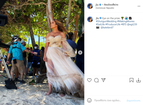 Αυτή τη φορά η JLo φωτογραφήθηκε με ένα νυφικό φόρεμα και με bridal look για τις ανάγκες της ταινία «Shotgun Wedding», για την οποία βρίσκετε στη Δομινικανή Δημοκρατία για γυρίσματα.