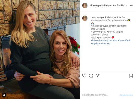 Μάλιστα, στην εικόνα που πόσταρε η Ντορέττα ποζάρει η ίδια με την μέλλουσα μανούλα, δείχνοντας μας της φουσκωμένη της κοιλίτσα.