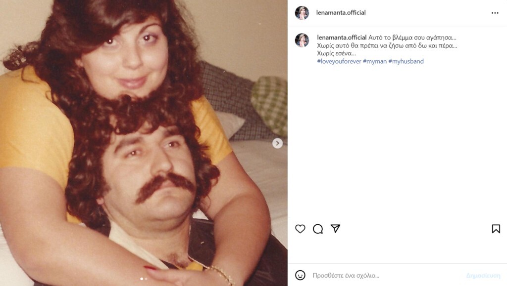 «Αυτό το βλέμμα σου αγάπησα…Χωρίς αυτό θα πρέπει να ζήσω από δω και πέρα…Χωρίς εσένα…», έγραψε η Λένα Μαντά στην ανάρτηση της.