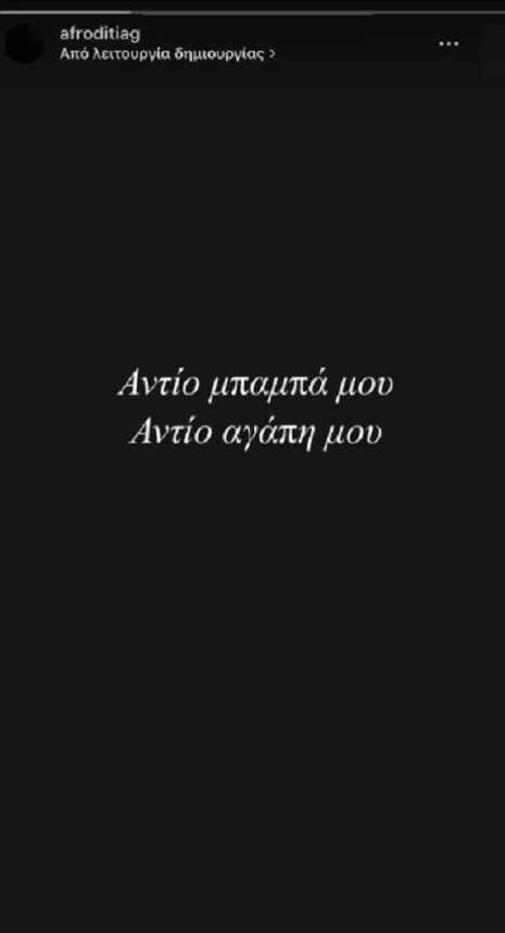 «Αντίο μπαμπά μου, αντίο αγάπη μου» έγραψε η Αφροδίτη Γραμμέλη σε ένα μαύρο φόντο και αποχαιρέτησε τον λατρεμένο της μπαμπά.