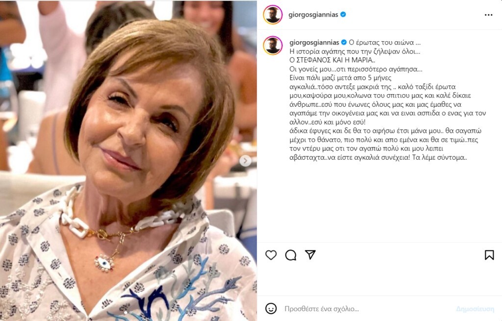 Να πούμε πως πριν από πέντε μήνες πέθανε και ο πατέρας του Γιώργου Γιαννιά.