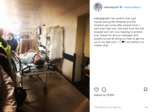 «Επιβεβαιώνω ότι τραυματίστηκα κατά τη διάρκεια της πρόβας και η κατάστασή μου χειροτέρεψε τις επόμενες ώρες. Δεν μπορώ να περπατήσω καν τώρα. Γύρισα από το πρώτο νοσοκομείο και πάω σε άλλο. Ευχαριστώ για όλα τα μηνύματα και τις προσευχές σας. Όλοι κάνουμε ότι μπορούμε για να σταθώ στα πόδια μου σύντομα. Θα το κάνω ό,τι κι αν γίνει», έγραψε στη λεζάντα.