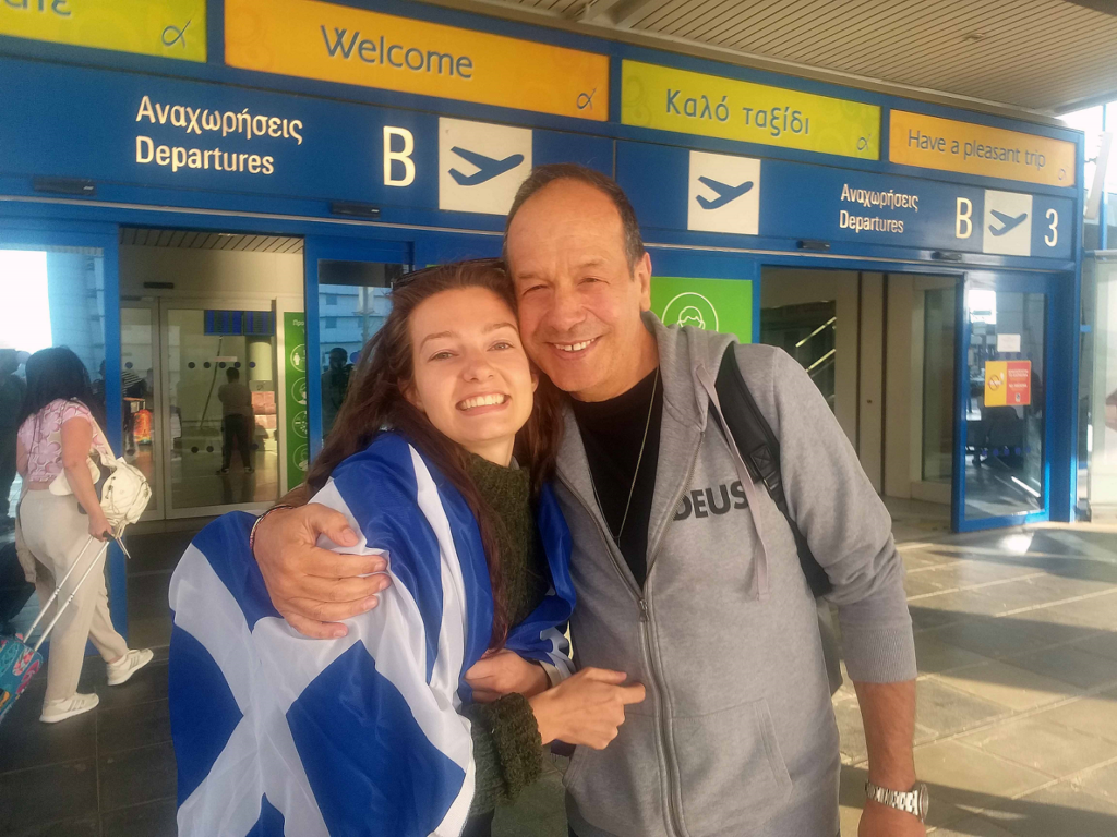 Οι πίνακες ανακοινώσεων του αεροδρομίου κατά τη διάρκεια της αναχώρησης έγραφαν: «ΚΑΛΗ ΕΠΙΤΥΧΙΑ ΕΛΛΑΔΑ!»