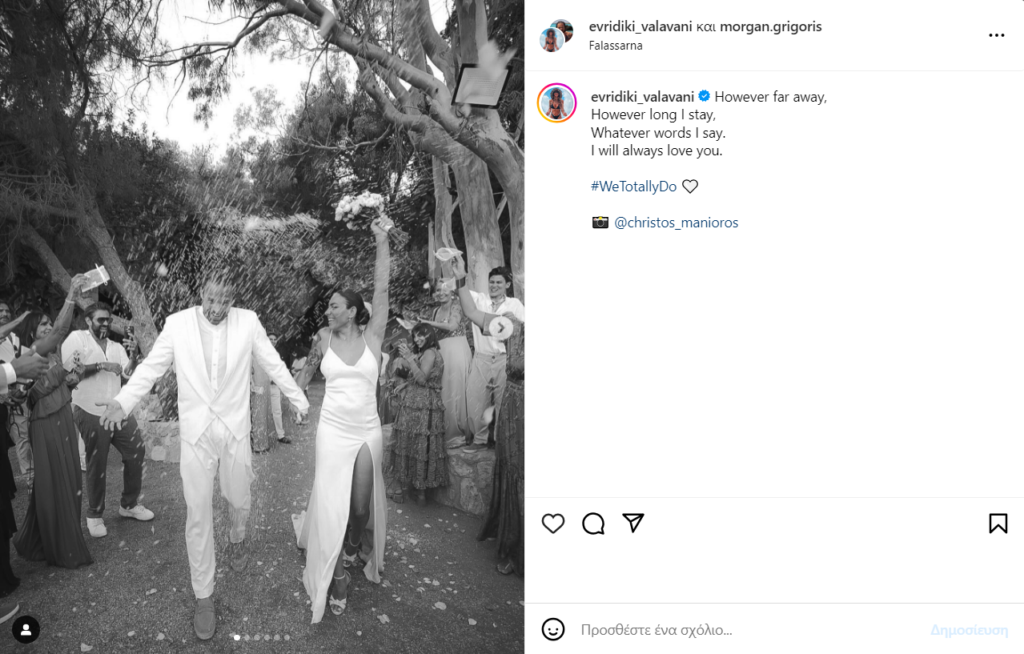 Μάλιστα, μία μέρα μετά τον γάμο του το ζευγάρι πραγματοποίησε την πρώτη του ανάρτηση στα social media αναρτώντας αδημοσίευτες φωτογραφίες από την ξεχωριστή ημέρα.