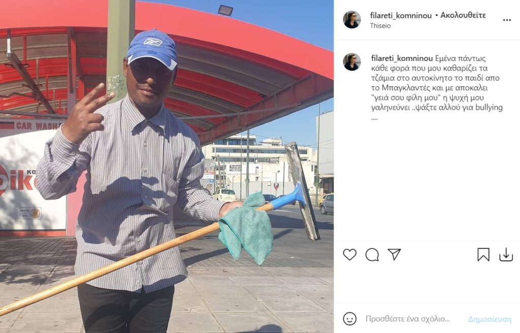 Συγκεκριμένα η ηθοποιός που είναι ιδιαίτερα ενεργή στα social media, ανέβασε στον προσωπικό της λογαριασμό μια φωτογραφία ενός μετανάστη με καταγωγή από το Μπαγκλαντές, ο οποίος της καθαρίζει συχνά τα τζάμια από το αμάξι της.
