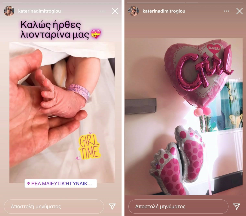 Ενώ την ευχάριστη είδηση έκανε γνωστή η Κατερίνα Δημητρόγλου με μια τρυφερή φωτογραφία μέσα από το μαιευτήριο.