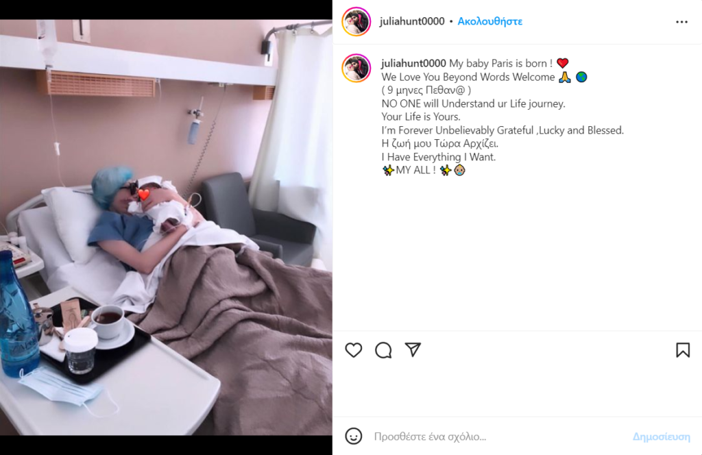 «Χιονισμένη γέννα είχαμε», έγραψε η Τζούλια Αλεξανδράτου και πρόσθεσε στη λεζάντα: «Το μωρό μου η Paris γεννήθηκε! Σε αγαπάμε. Καλώς ήρθες. (9 μήνες πέθανα). Κανείς δεν θα κατανοήσει το ταξίδι της ζωής μας. Η ζωή σου είναι δική σου. Είμαι για πάντα απίστευτα ευγνώμων, τυχερή και ευλογημενή. Η ζωή μου τώρα αρχίζει. Έχω ό,τι θέλω. Είσαι τα πάντα»