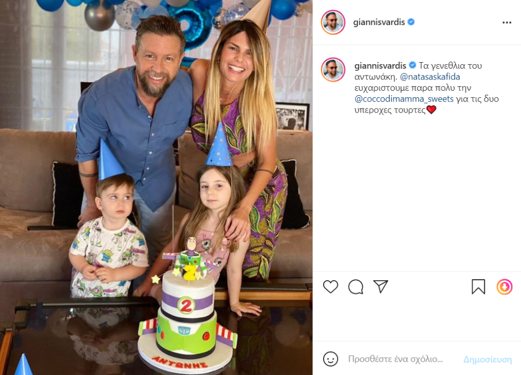 Μάλιστα ο Γιάννης Βαρδής που είναι αρκετός ενεργός στα social media, θέλησε να ευχηθεί δημόσια στον γιο του αλλά και να μοιραστεί με τους followers του μία φωτογραφία με την εντυπωσιακή τούρτα που έσβησε.