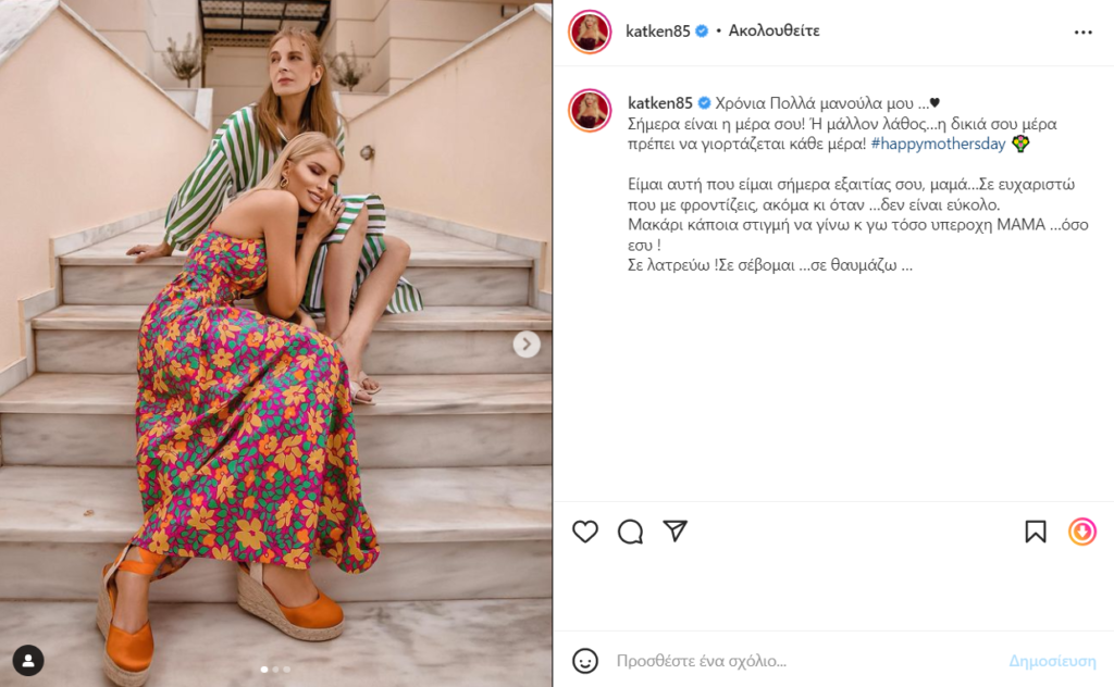 Μάλιστα, το ίδιο έκανε και η Κατερίνα Καινούργιου, η οποία με αφορμή αυτή την ιδιαίτερη ημέρα δημοσίευσε στον προσωπικό της λογαριασμό στο Instagram μια φωτογραφία της μητέρας της.