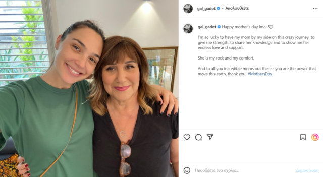 Μάλιστα, το ίδιο έκανε και η Gal Gadot, η οποία με αφορμή αυτή την ιδιαίτερη ημέρα δημοσίευσε στον προσωπικό της λογαριασμό στο Instagram μια φωτογραφία της μητέρας της.