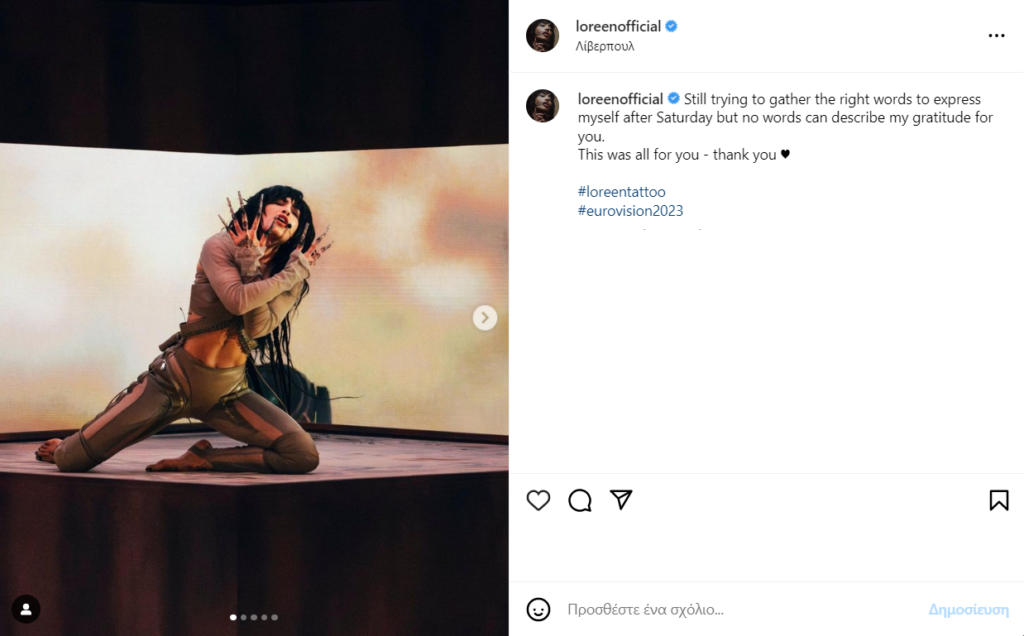 Ενώ τρεις μέρες μετά την νίκη της στον μουσικό διαγωνισμό, η τραγουδίστρια έκανε την πρώτη της ανάρτηση στο Instagram στην έγραφε: