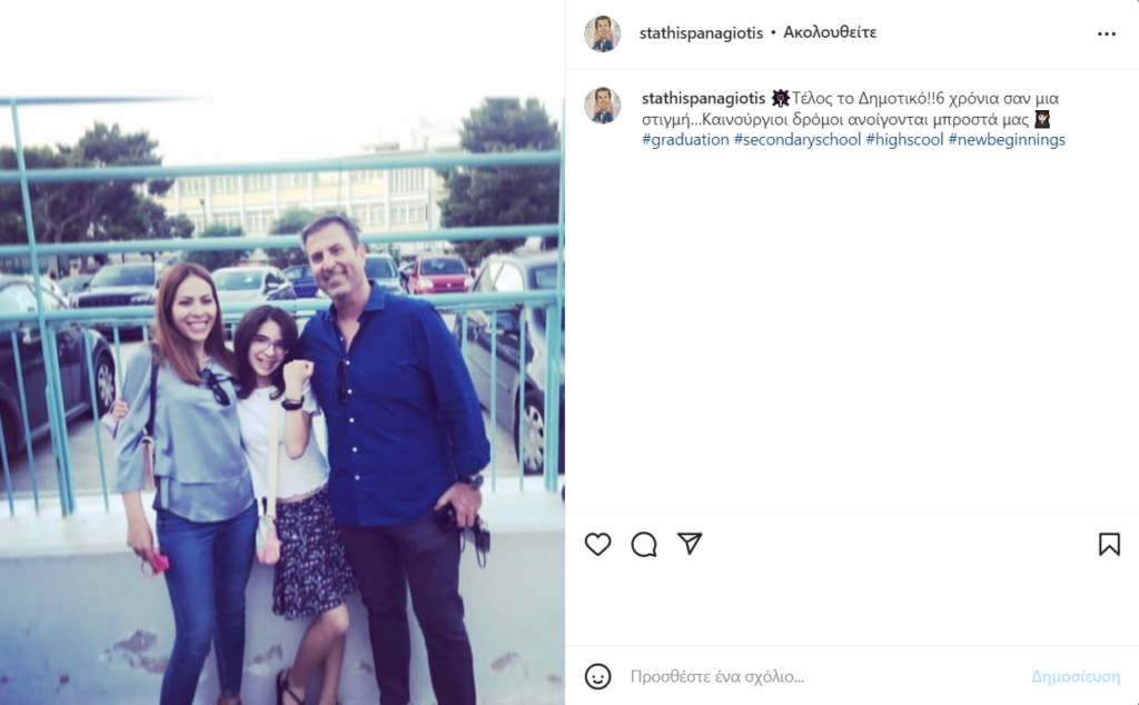 Ωστόσο αυτή τη φορά ο δημοσιογράφος έκανε την εξαίρεση και ανήρτησε στον προσωπικό του λογαριασμό στο Instagram μια φωτογραφία με τη σύζυγό του, Αθανασία και την κόρη του, η οποία αποφοίτησε από το δημοτικό.