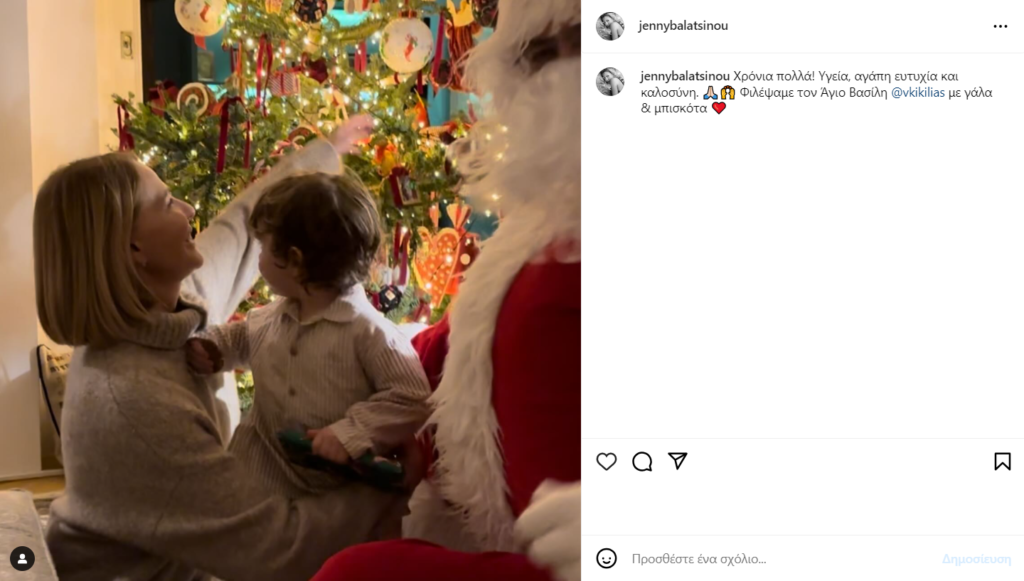Συγκεκριμένα, κρατώντας αγκαλιά τον γιο της, Παναγιώτη – Αντώνιο κάτω από το χριστουγεννιάτικο δέντρο του σπιτιού της και έγραψε στην ανάρτησή της: