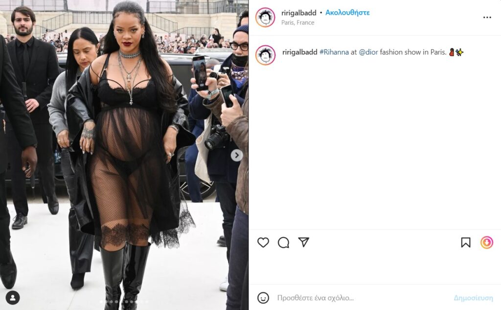 Όπως έγινε γνωστό, η Rihanna βρίσκεται στο Παρίσι για την Εβδομάδα Μόδας και οι εμφανίσεις της βρίσκονται στην πρώτη γραμμή, καθώς διανύει και τους πρώτους μήνες της εγκυμοσύνης της.