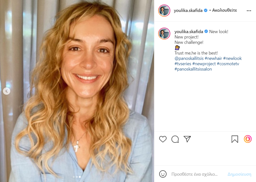 «New look, new project, new challenge», έγραψε η Γιούλικα Σκαφιδά στο post της, όπου την βλέπουμε να έχει επέλεξε μια αρκετά ανοιχτή απόχρωση και έγινε πιο ξανθιά.