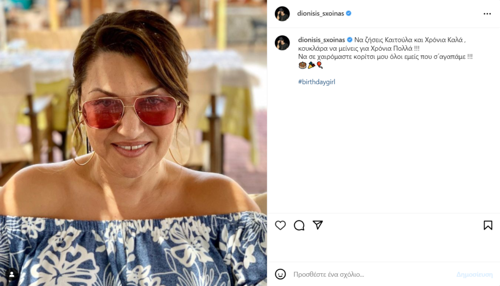 Η ανάρτηση και οι δημόσιες ευχές του Διονύση Σχοινά στην Καίτη Γαρμπή για τα γενέθλια της