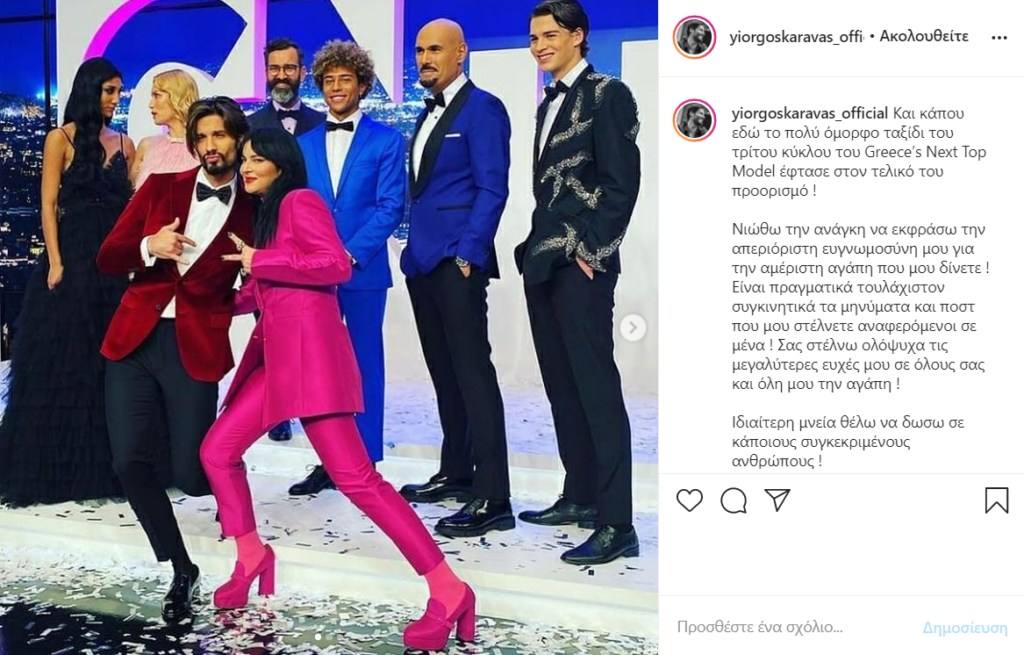Μάλιστα, ο coach των παικτών Γιώργος Καράβας μετά το τελευταίο επεισόδιο του GNTM έκανε μια ανάρτηση στον προσωπικό του λογαριασμό στο Instagram.