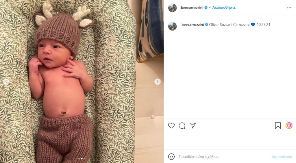 Μάλιστα, η 34χρονη Carrozzini καλωσόρισε που τον γιο τους, δημοσιεύοντας στον προσωπικό της λογαριασμό στο instagram μία σειρά από φωτογραφίες οι οποίες απέσπασαν χιλιάδες likes και σχόλια.