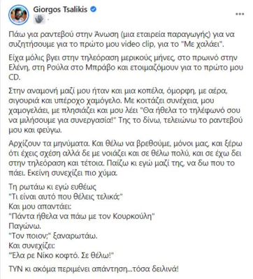 Η ανάρτηση του Γιώργου Τσαλίκη