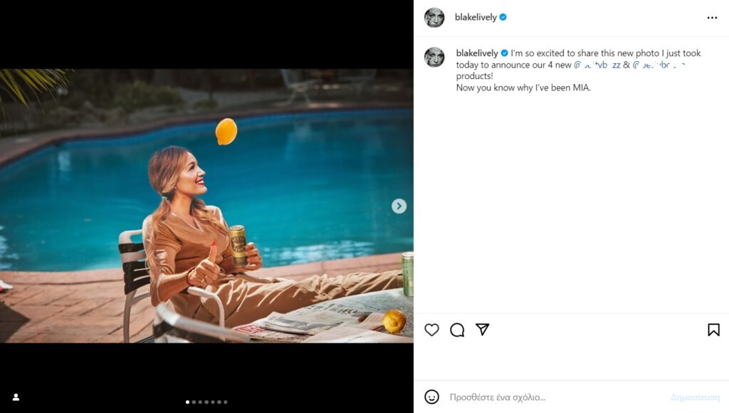 Έτσι η Blake Lively δημοσίευσε στον προσωπικό της λογαριασμό στο Instagram, μια φωτογραφία της και στη λεζάντα της έγραψε με χιούμορ: «Είμαι τόσο ενθουσιασμένη που μοιράζομαι αυτή τη φωτογραφία που μόλις τράβηξα».