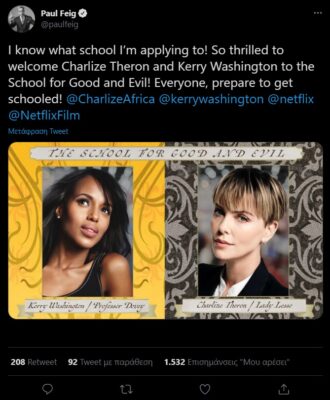 Η Charlize Theron και η Kerry Washington εντάσσονται στο καστ της ταινίας «The School for Good and Evil» του Paul Feig για το Netflix.