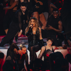 Ενώ φορώντας ένα λέδερ κορμάκι με μαύρα γάντια και πλαισιωνόταν από αρκετούς χορευτές, η Rita Ora απέσπασε το πιο θερμό χειροκρότημα από τους παραβρισκόμενους στο στάδιο.